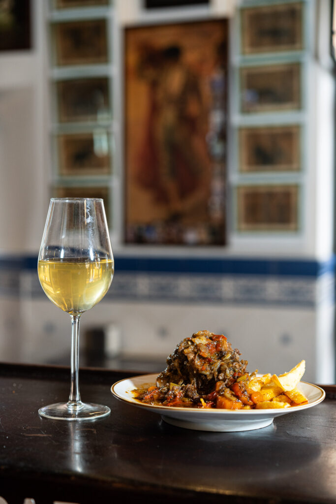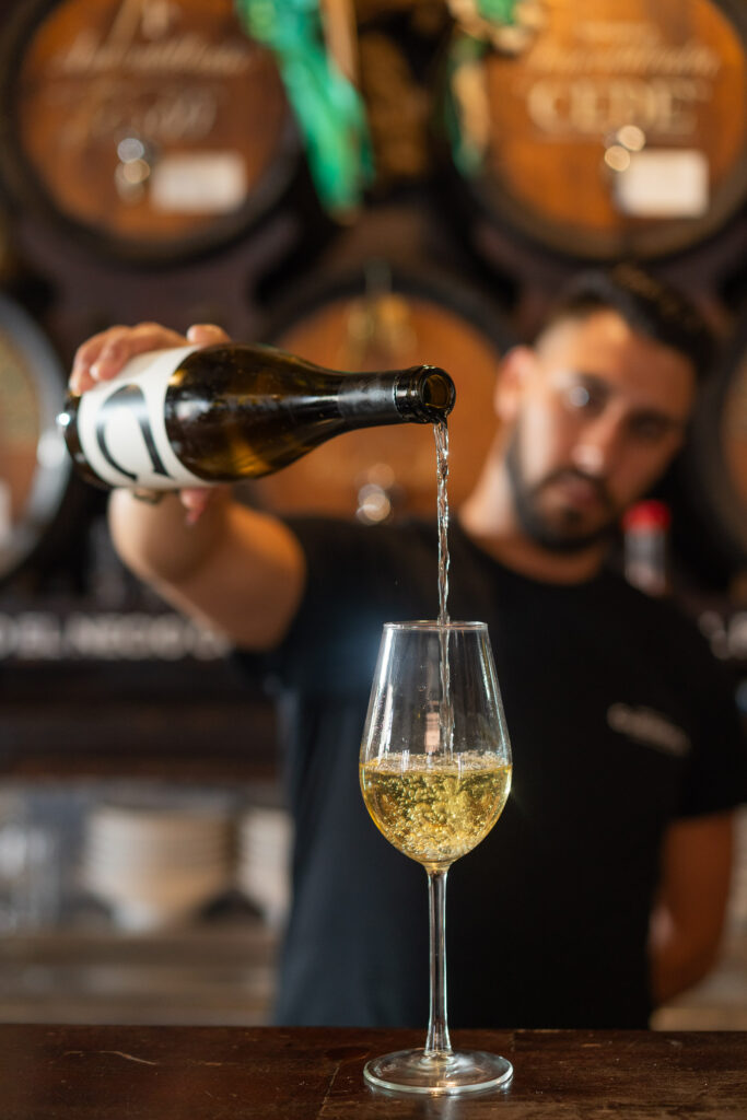 Un poco más allá aparece la bodega / tienda de vinos, con una selección de 200 referencias de vinos del Marco y el resto de Andalucía. Y todavía queda un cuarto intermedio dedicado a exposiciones de pintura o fotografía y en el que, de vez en cuando, alguien con buen gusto y duende se arranca a la guitarra o al cante.